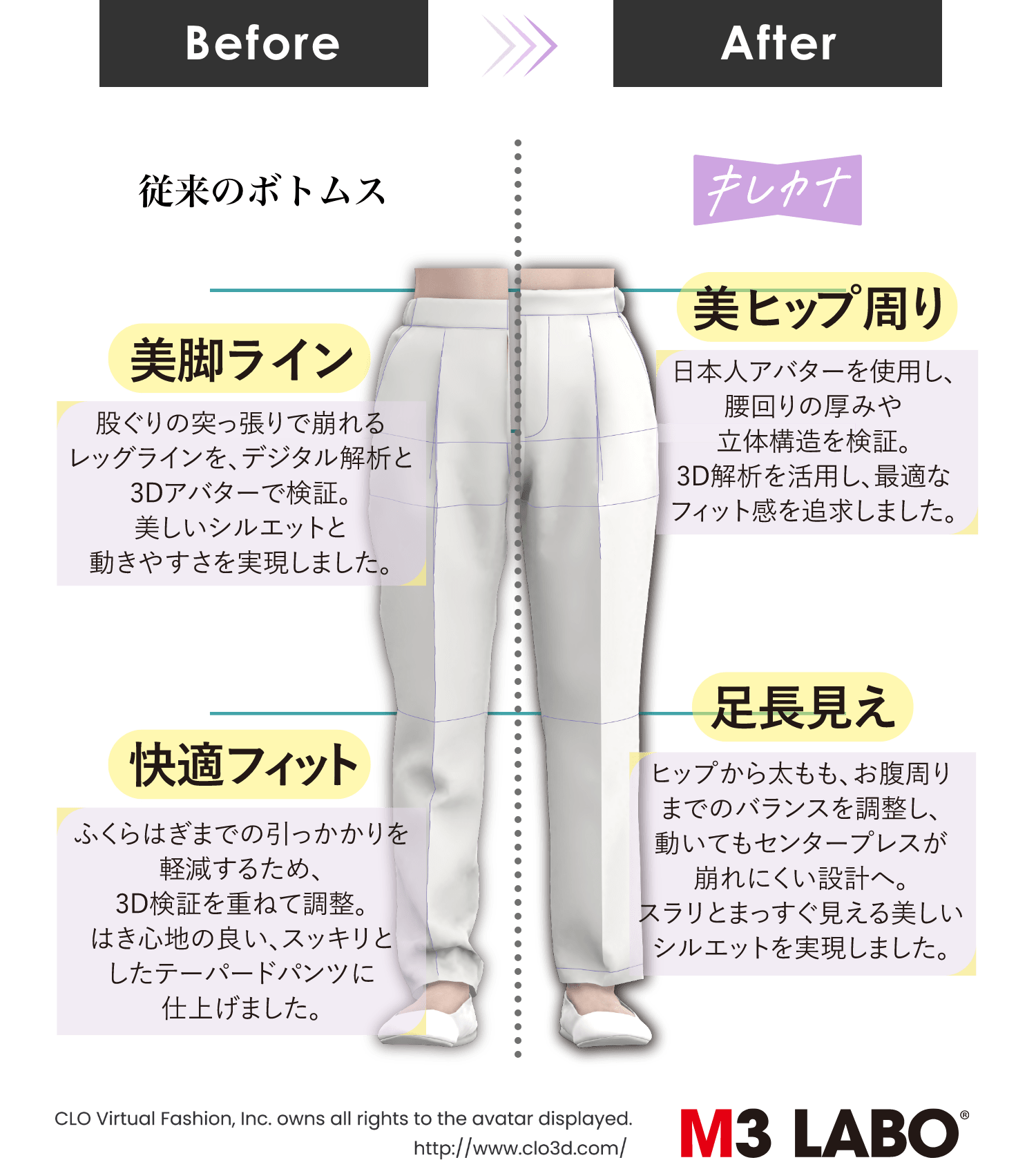3Dデジタル技術を活用し女性のボトムス選びの悩みにアプローチした、M3 LABO※監修のキレイをカナエル3Dボトムス「キレカナ」がライトオンから登場