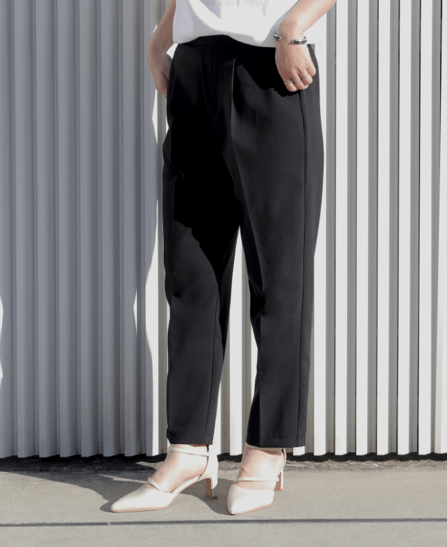 ヒップラインの丸みを引き立てる立体的な設計が特徴。テーパードシルエットの程よいゆとりと、足首にかけたスッキリとしたラインが、脚を綺麗に見せつつ、動きやすさも両立。肉を拾いにくい無駄のないカーブが、美脚を演出します。