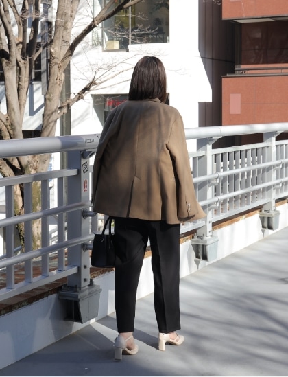 美しいシルエットを損なわず、使いやすさも両立した脇ポケット。手の出し入れがスムーズで、テーパードラインを邪魔しない設計に。浮きや張りを抑え、すっきりとした印象に仕上げました。