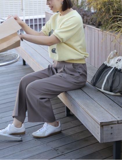 フラットシューズにもヒールにも合う、計算された裾幅と丈感。足元をスラリと見せながら、バランスよく決まるシルエットに。