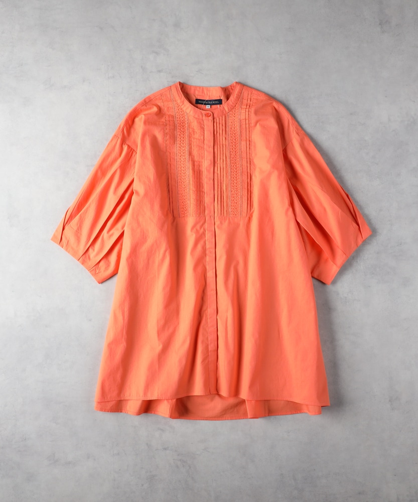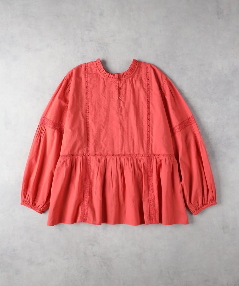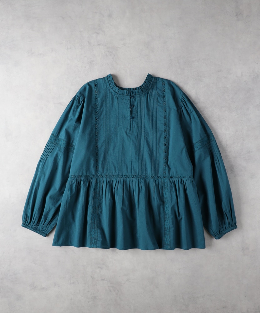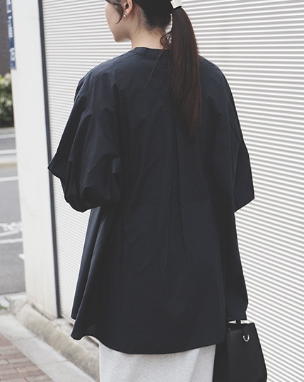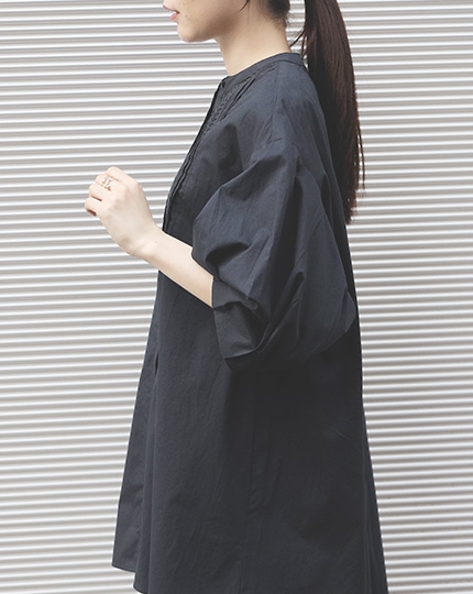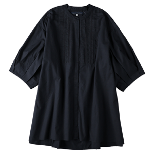 ボディにデザイン性のあるピンタックを施し、袖にタックを入れたボリュームを出したブラウス。