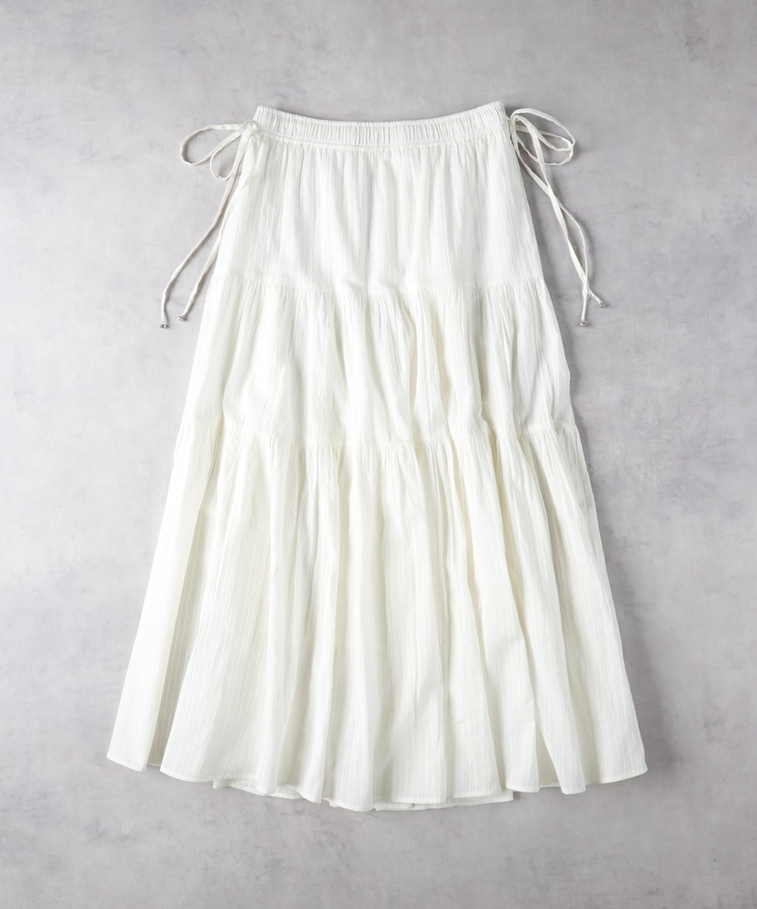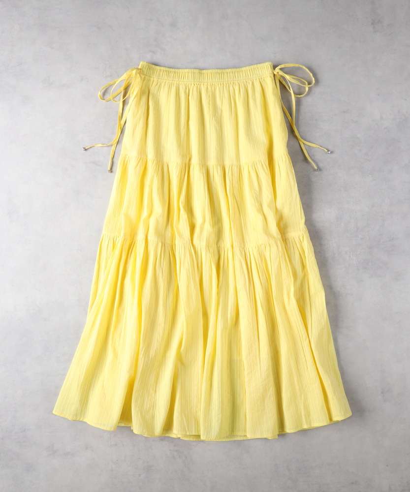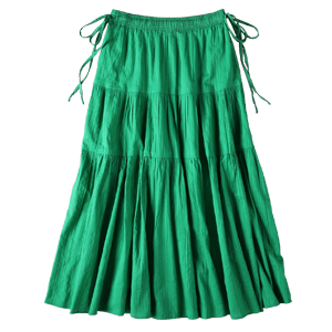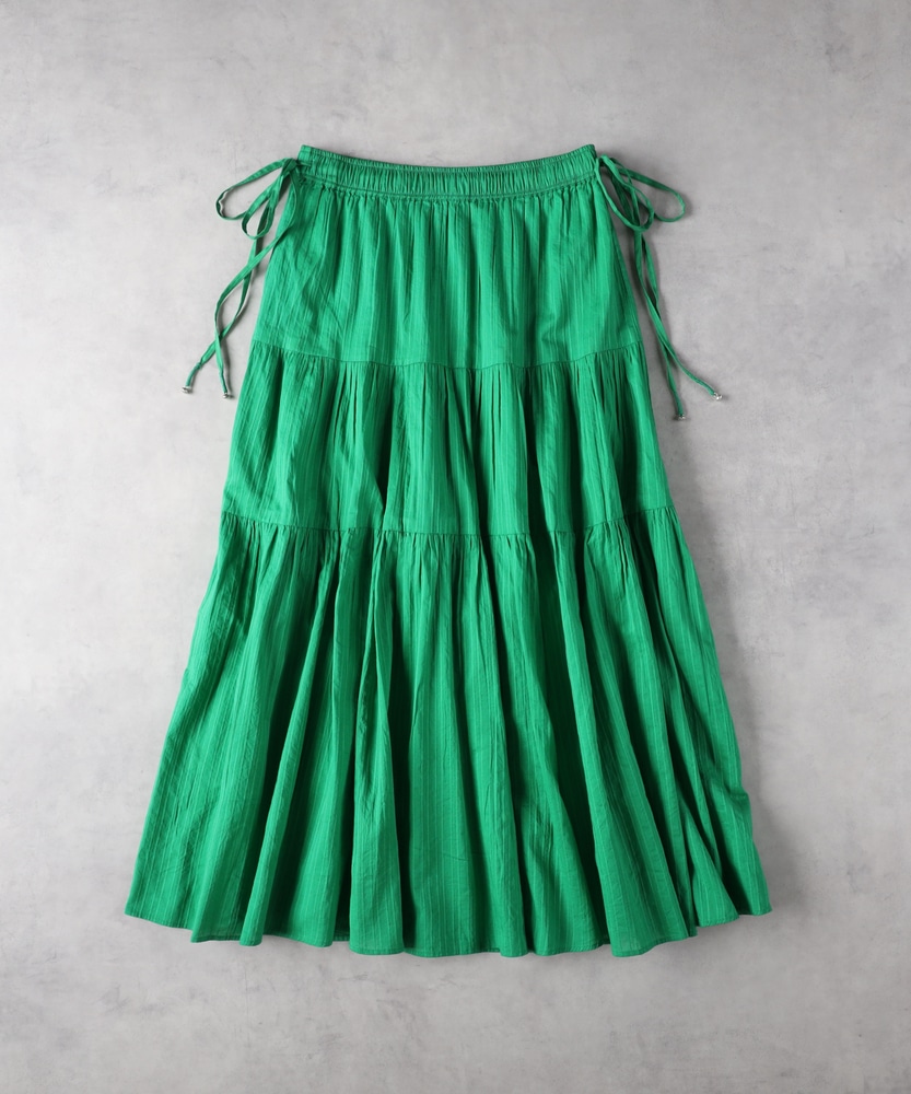 ウエストサイドの紐先には、ロータス釦と糸巻デザインを入れてインドらしさを表現しています。インドらしさもありつつもスタイルカバーしてくれるスカートです。