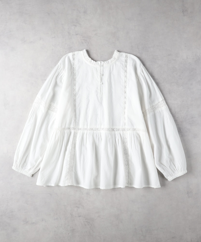 インド綿にコットンレースを使用し、細かなピンタックを入れた、インドの技法が詰まったアイテムです。