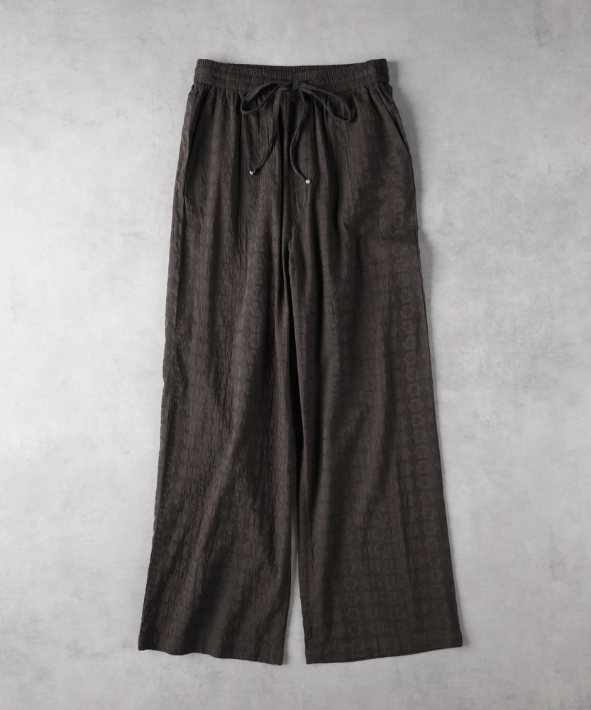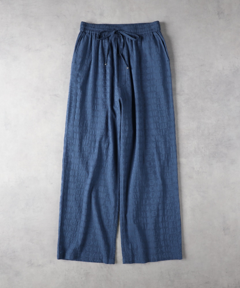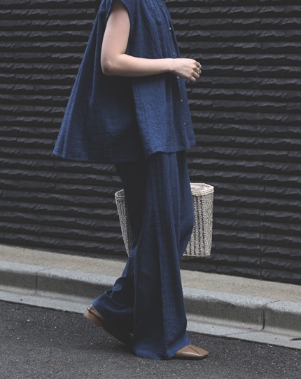 エスニック要素が強くなり過ぎないよう、スラっとした印象を残したワイドパンツに。