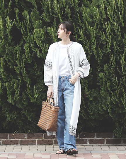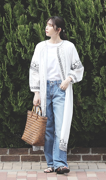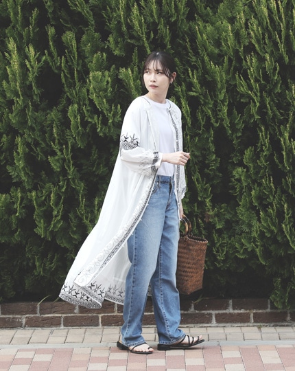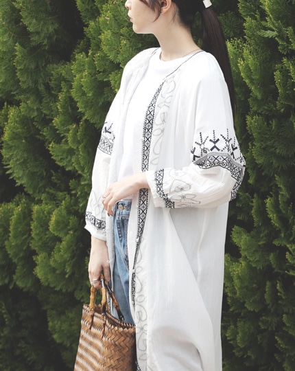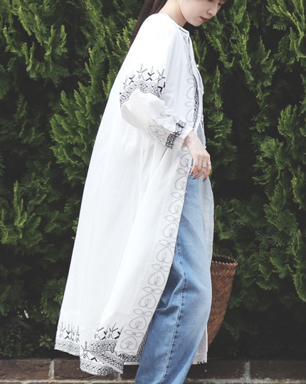 全面刺繍でインパクトがありますが、インドならではの柔らかな風合い・印象により、コーディネートの主役になるアイテム。