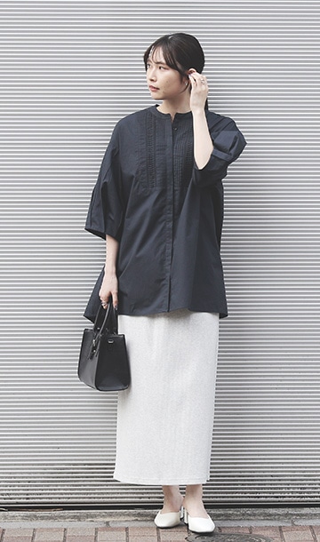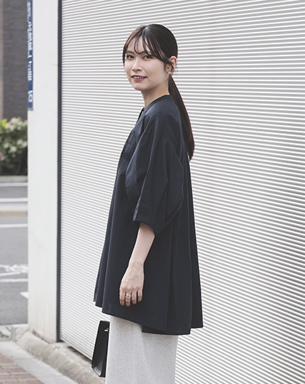 きれいめ要素もカジュアル要素もあり幅広いタイプの人が着やすいデザイン。