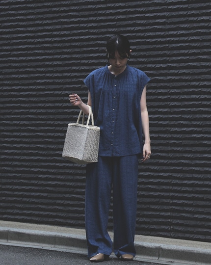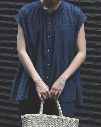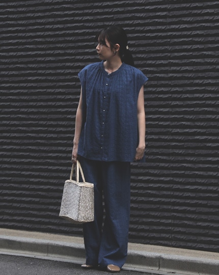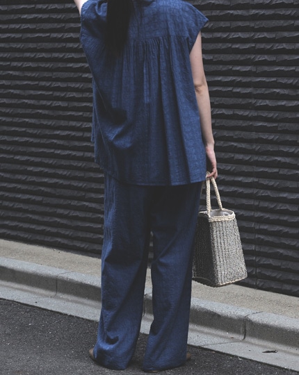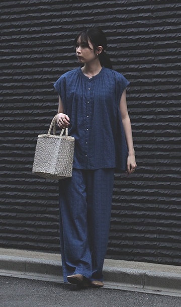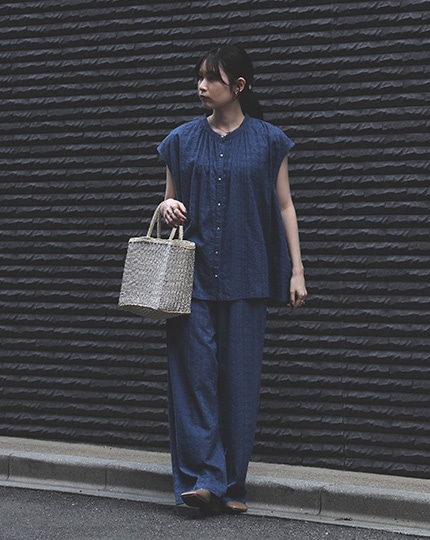 ややハリのある綿生地を使用し、インド綿の中でもややキレイめ見えするアイテムです。
