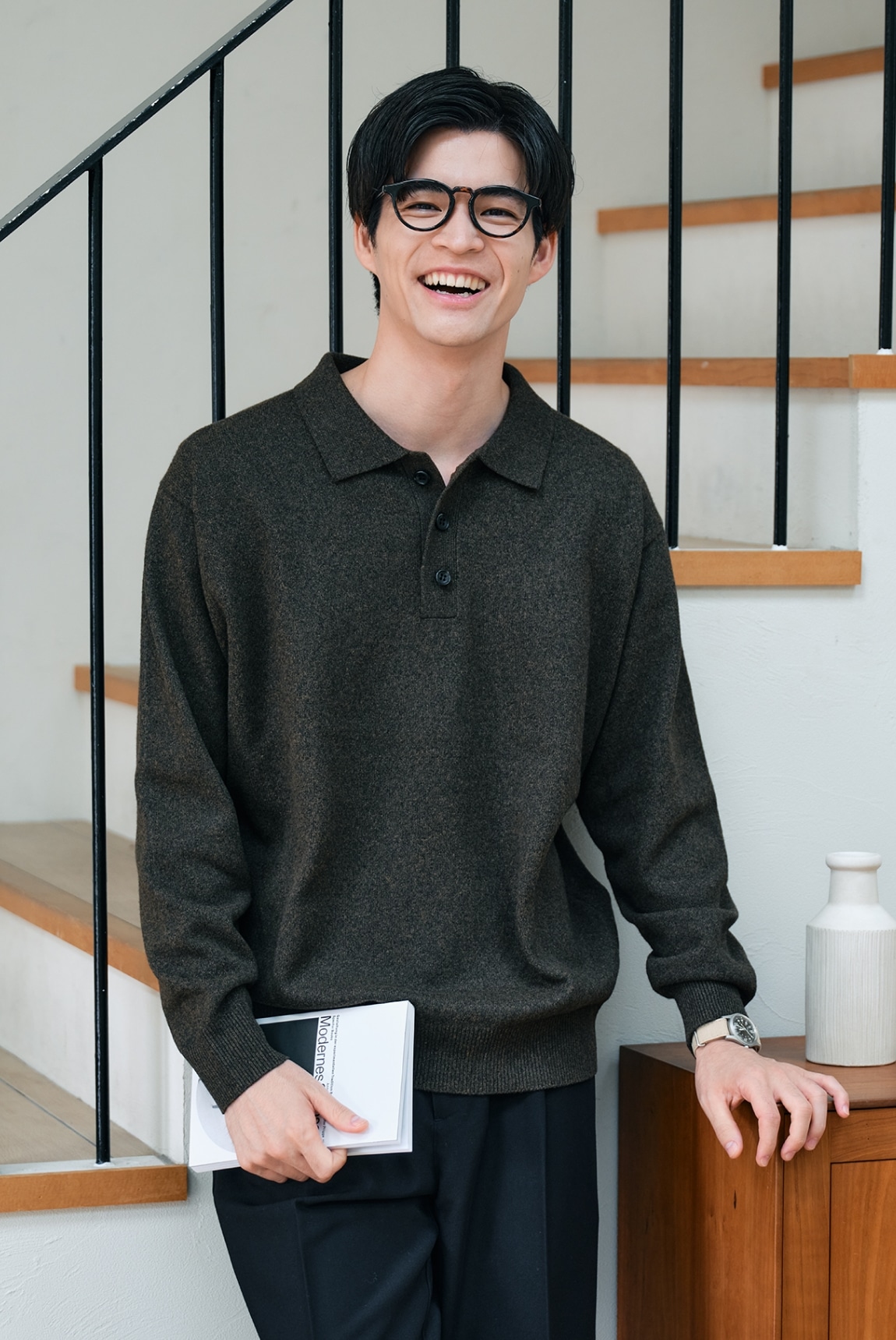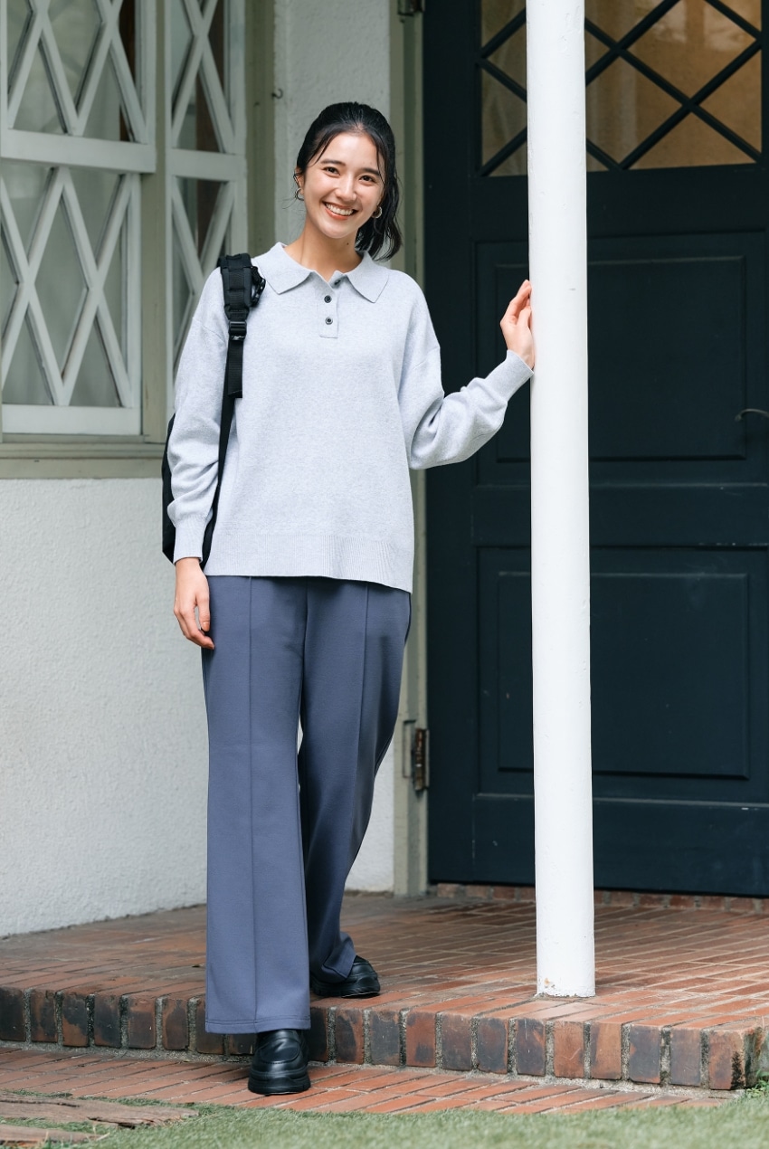 ポリナイロンニットポロ襟セーター