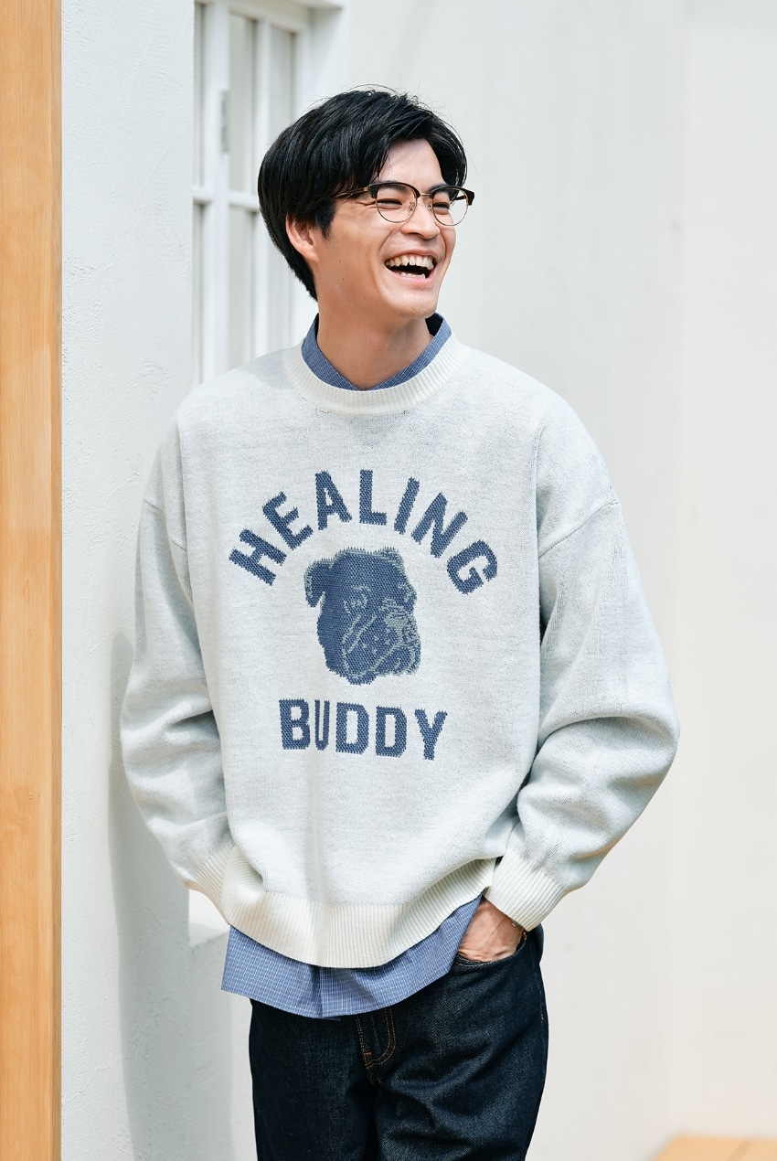 モールニットロゴクルーネックセーター