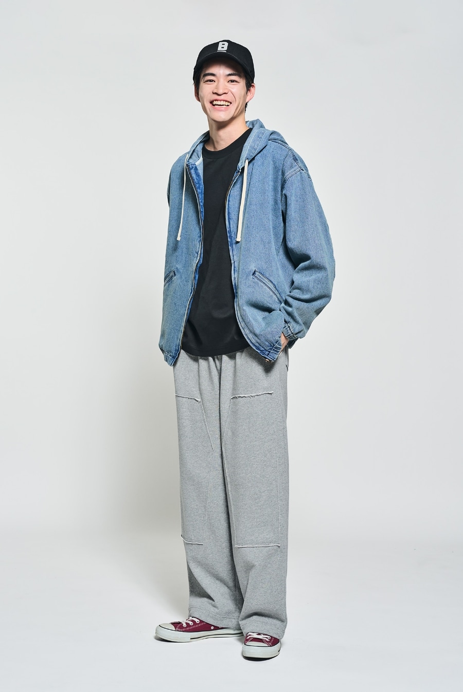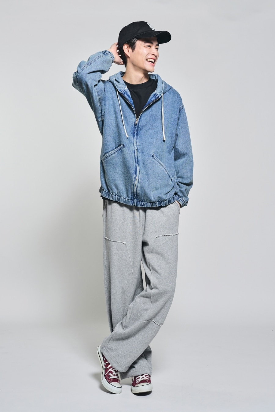 デニムフードシャツ