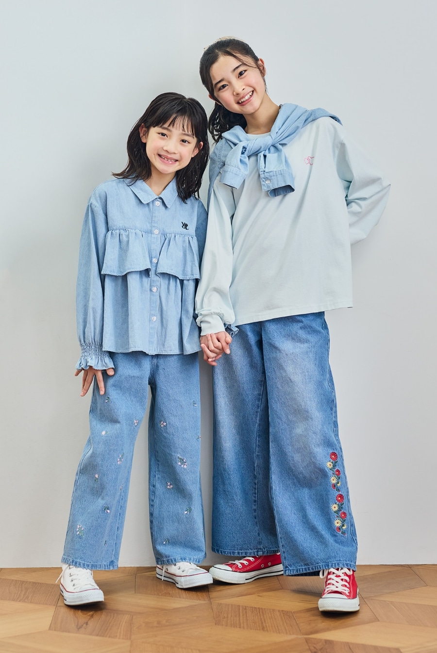 デニム刺繍ワイドパンツ