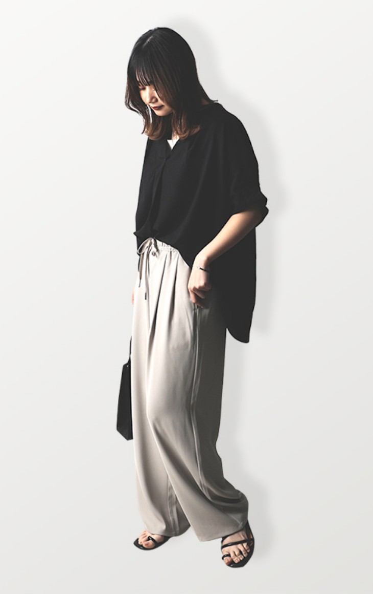 ワイドシルエットだから薄着になるシーズンも安心。トレンド見え&体型カバーを叶えます。