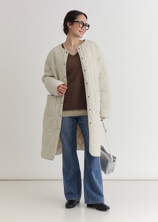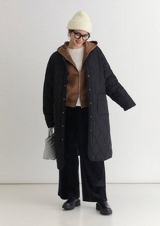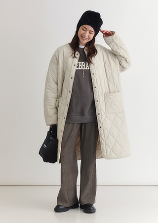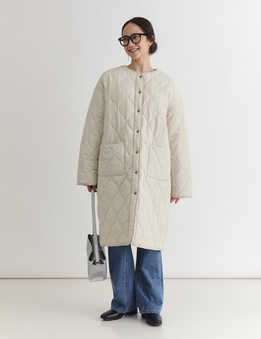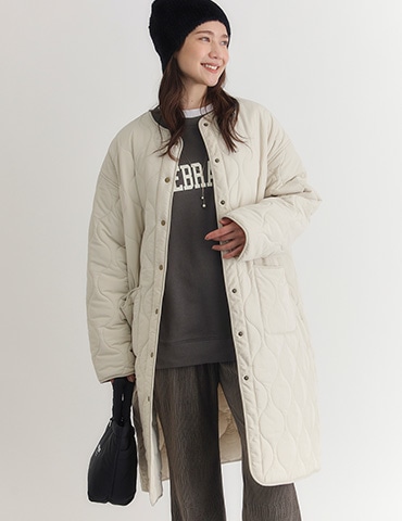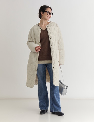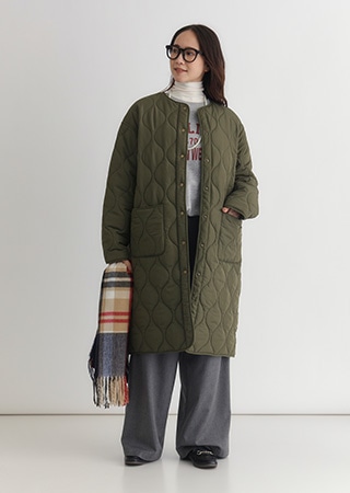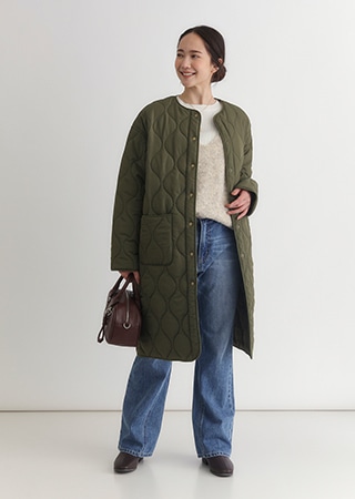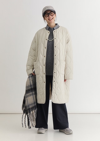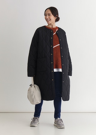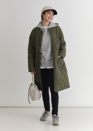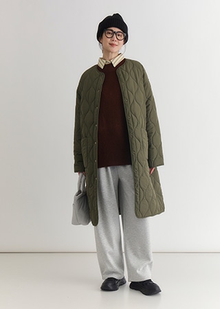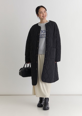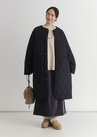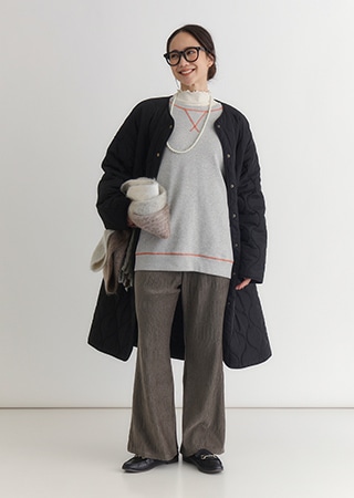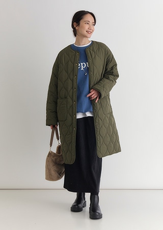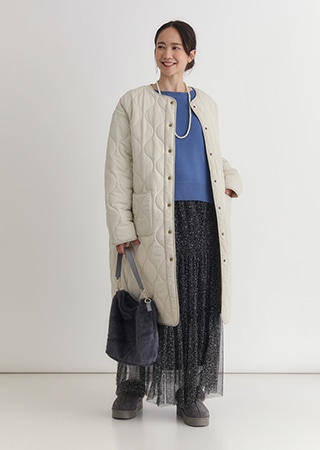 膝下までの絶妙な丈感と、裾に向かってなだらかに広がるAラインが、縦のラインを強調。